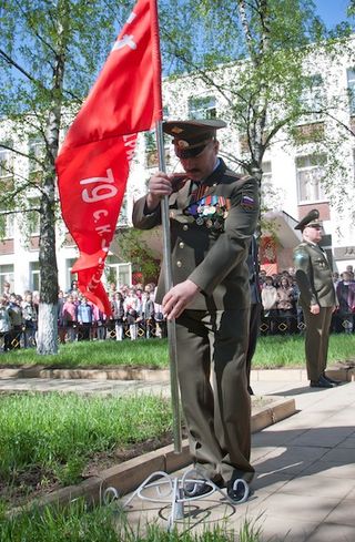 Много теплых слов в адрес ветеранов Великой Отечественной войны было сказано директором школы Коркиной Анной Владимировной. В школе № 891 на вечном хранении находится копия Знамени Победы. В завершении митинга были возложены цветы к памятнику Алии Молдагуловой: