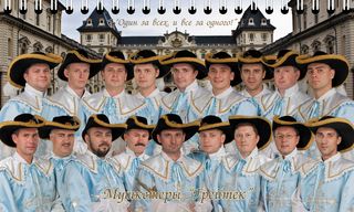 группы компаний "Грейтек" в образах самого известного романа Александра Дюма "Три мушкетера": Д’Артаньяна, Атоса, Портоса и Арамиса. Девизом календаря стала крылатая фраза-девиз королевских мушкетёров: