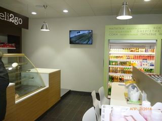Для удобства клиентов на АЗК имеются магазин, уютное кафе, туалет, ТВ, бесплатный Wi-Fi Интернет, банкомат и терминал оплаты платежей.