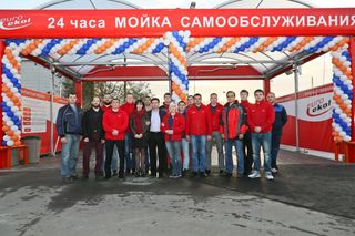 После торжественной части состоялось нешуточное соревнование на скорость и качество мойки автомобиля, в котором приняли участие администраторы автомоек №№ 1, 3, 5.