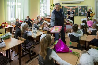 ребятишек школы-сада №1 поздравил и пожелал хороших оценок в новом учебном году