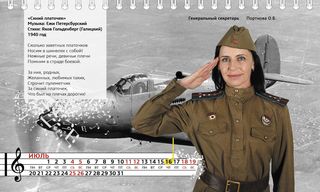 На страницах календаря, представлены отрывки из легендарных советских песен, посвященных Отечественной войне.