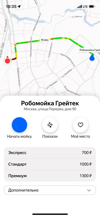 В приложении нужно выбрать "Робомойка Грейтек" и нужную услугу.