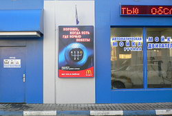 4. Преимущества: В отличие от наружной городской рекламы, восприятие рекламы на АЗК происходит значительно дольше, поскольку процесс заправки или мойки автомобиля занимает определенное время. Кроме этого, постоянные клиенты(80% от общего числа) в течение недели посещают АЗК несколько раз, что увеличивает число контактов с рекламной информацией в моменты, когда внимание водителя и пассажиров не приковано к дороге. Все это способствует положительному восприятию информации и хорошей запоминаемости. 5. Стоимость: