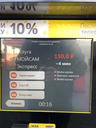 Цены – Роботизированной бесконтактной автомойки Для накопления бонусов при оплате услуг наличными деньгами или банковской картой необходимо на сенсорном мониторе ввести номер своего мобильного телефона. Бонусы накапливаются на лицевом счету клиента по формуле: за каждые 10 рублей начисляется 1 бонус. При списании бонусов действует формула: 1 бонус = 1 рублю. Для списания бонусов при оплате услуг необходимо: